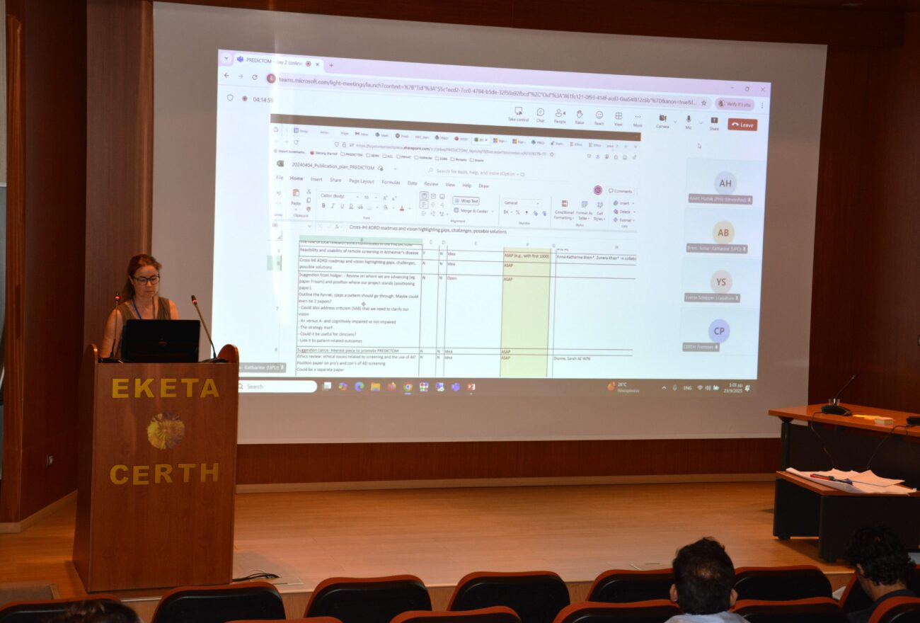CERTH was represented by Spiros Nikolopoulos (WP1 Biomarkers Lead and member of the project’s Management Board), along with team members Kostas Georgiadis, Ioulietta Lazarou, Vasilis Alepopoulos, Giorgos Giannios and Margarita Grammatikopoulou. CERTH’s role in WP1 encompasses the integration of the Banking App and the implementation of a developed EEG protocol, both aimed at improving the detection of early-stage cognitive decline. The team was excited to host this year’s meeting and looks forward to continuing with the next steps in PREDICTOM regarding the analysis of data collected during the ongoing study.